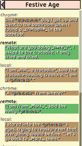 - Once everyone has joined in, whoever created the story starts the game by writing the first part, in 160 characters or less. There are a couple of special highlight markers: *asterisk* and _underscore_.